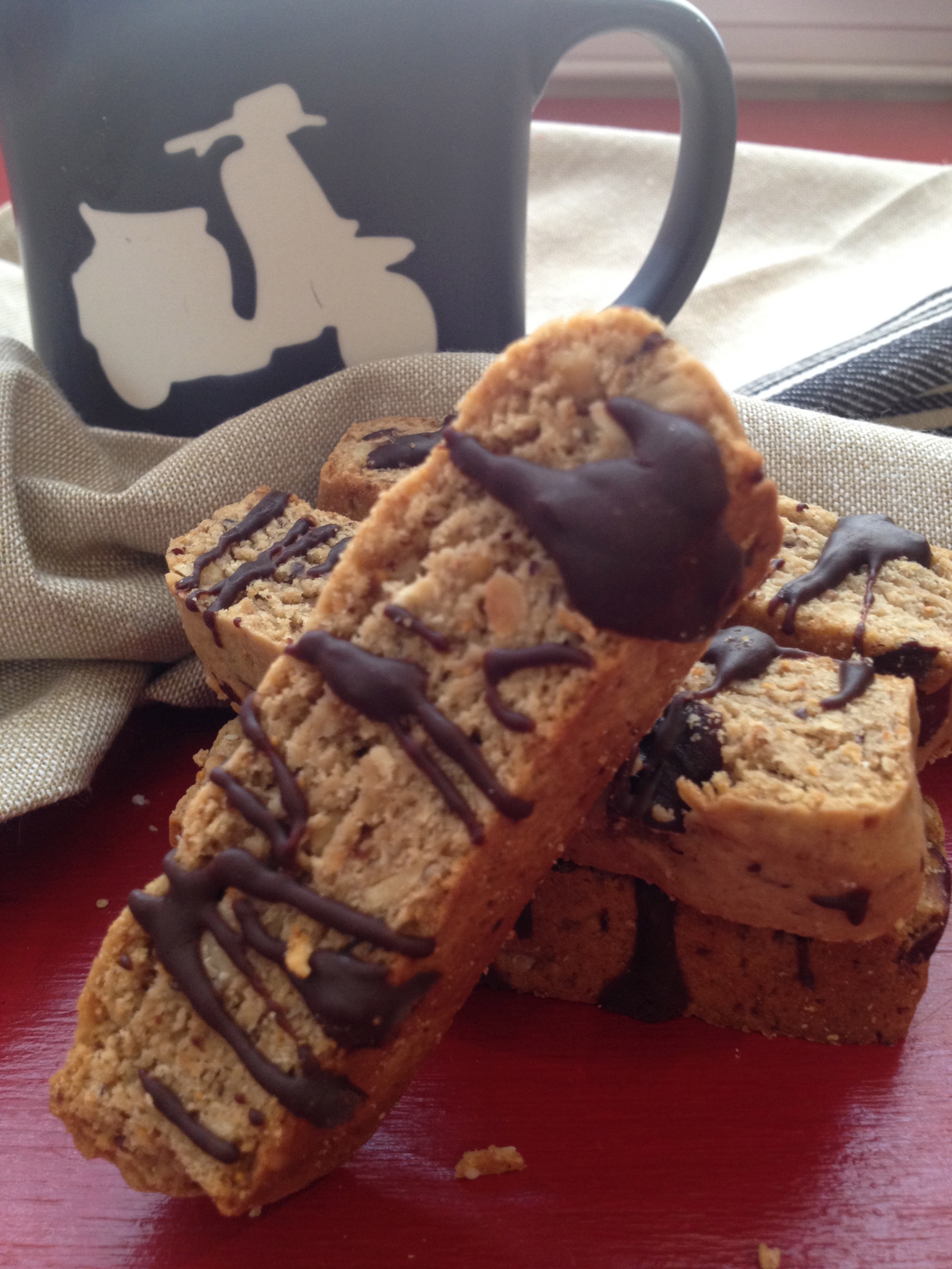 It brings me back to the times when my italian grandmother made them for us, she would have never varied from the traditional recipe of anise or almond but it didn’t matter because they were one of those delectables that I waited to have every time we went to her house for a visit. I can remember the old antique plate stacked full of biscotti waiting on the table when we arrived. I am not even sure I said hello or gave her a hug, I just made a bee line to that table. Of course no vin santo for us but milk did the trick when I was younger, she probably wished she would have given us a sip or two of vin santo when she agreed to watch all 8 of her grandkids together. Oh mama mia, poor lady!