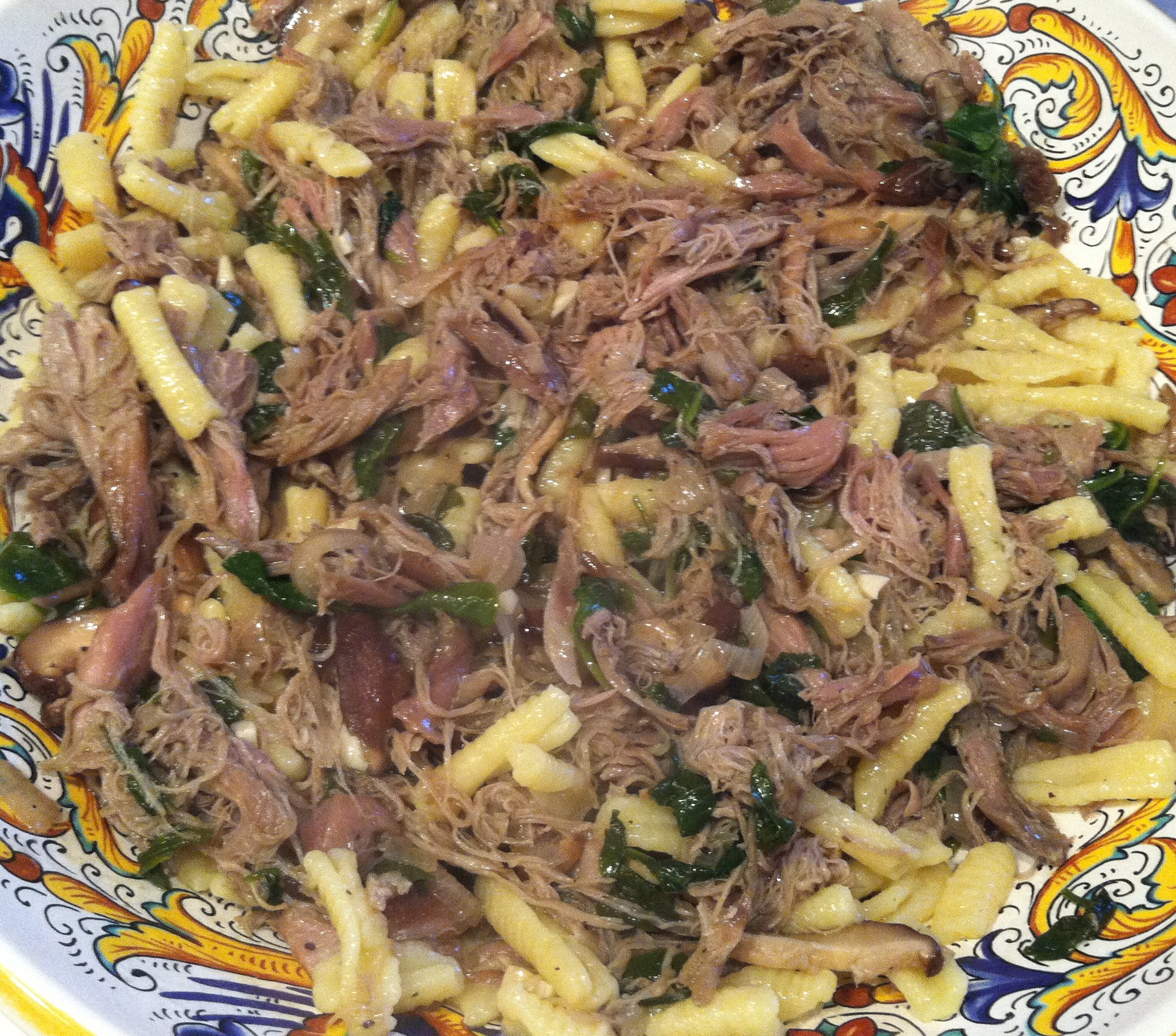 Duck marinated and cooked in its own fat in a low oven for 14 hours, falling off the bone and dense with flavor, doesn’t this just sound so unappetizing? I mean really and then served over homemade cavatelli or pappardelle pasta accompanied by a scrumptious glass of brunello? Or perhaps mixed with sautéed wild mushrooms over caramelized shallot potato au gratin and a glass of burgundy……ahhh the endless possibilities of torture.