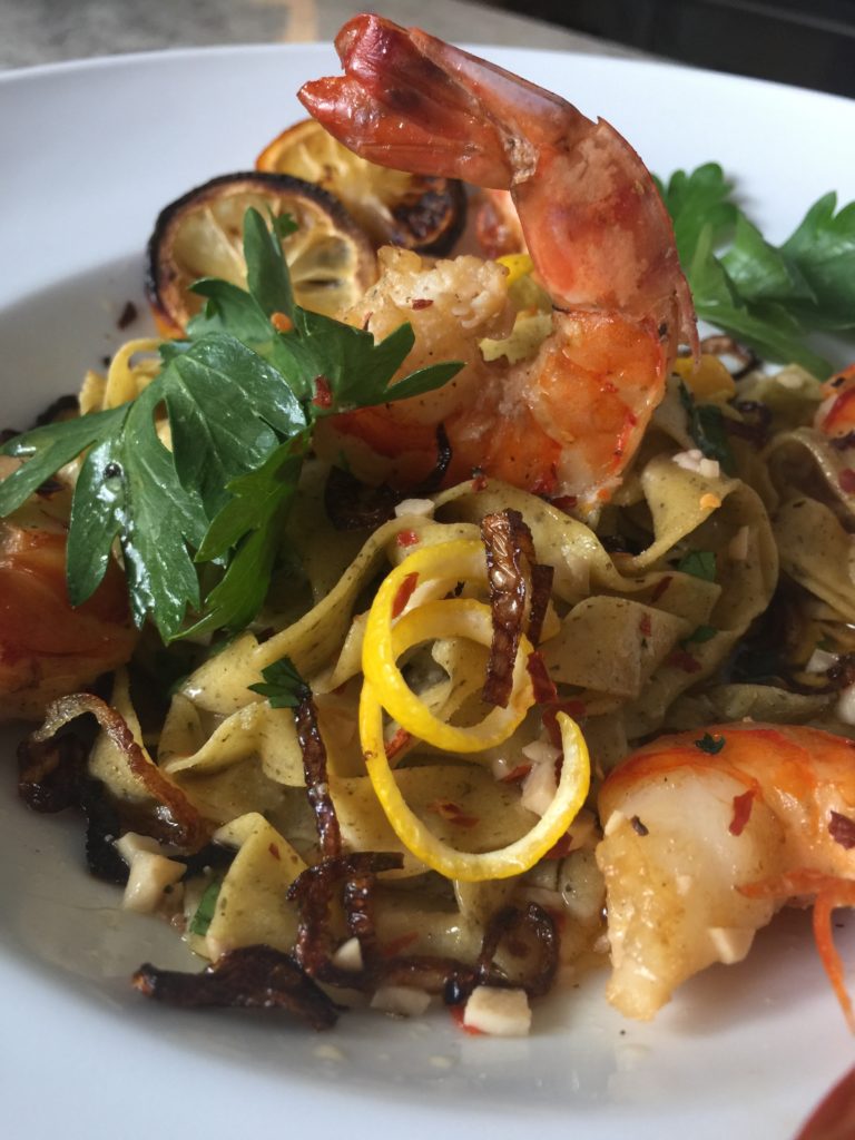 Lemon Pasta with Broiled Salmon and Charred Lemon