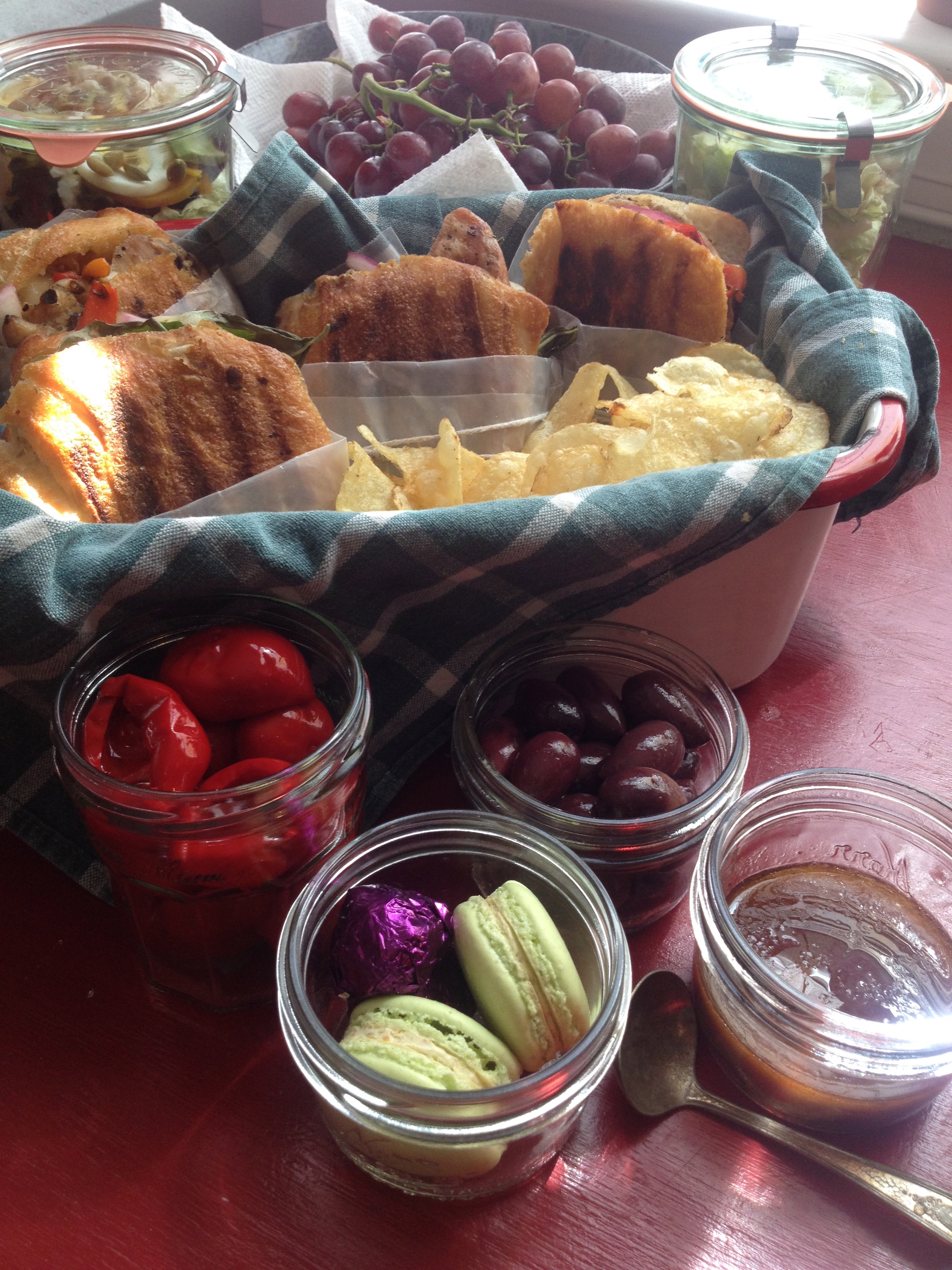 While we did have a few other goodies in the picnic basket and I could add them to this blog post, I decided just to focus on the salad in the jar. It is totally fun to pick whatever lettuce suits your taste buds and layer away with fresh or roasted veggies, proteins, eggs, dried fruit, nuts, and so on…. the more colorful, the more fun to eat and the more fun to eat, the more often you might venture into jarred salad creations!
